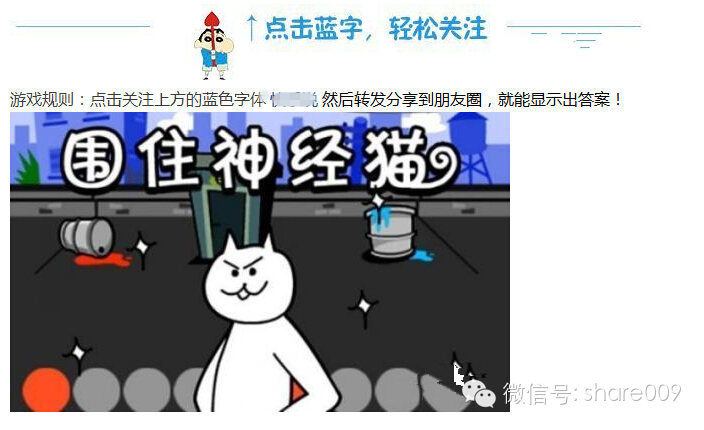 除了這個(gè),圍住神經(jīng)貓還有很多可以去挖掘制造噱頭吸引粉絲的地方。比如說(shuō),我可以將怎么樣用最少的步驟去圍住神經(jīng)貓的方法很細致的寫(xiě)成文章發(fā)給大家。但是,文章內容里,你只介紹到使用3步的方法。然后,要想知道怎么樣一步就圍住神經(jīng)貓,你就讓他關(guān)注分享之后看答案,或者是下一篇繼續解答。