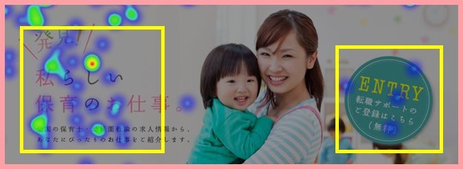 點(diǎn)擊熱點(diǎn)集中在banner的左側。但是左側沒(méi)有鏈接,只有文字展示。相反,右側有注冊按鈕但卻幾乎沒(méi)有點(diǎn)擊熱點(diǎn)。由于注冊按鈕是轉化的入口,所以作為網(wǎng)站來(lái)說(shuō),是必須進(jìn)行改善的部分。預測的原因詳見(jiàn)下面所述。