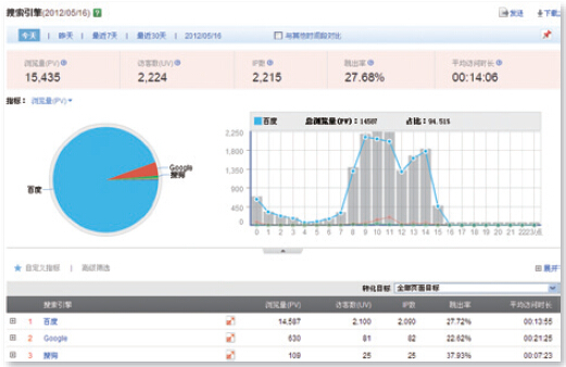 具體分析方法是:先了解并分析搜索引擎總流量,再細分每個(gè)搜索引擎流量,最后細分重要的搜索詞帶來(lái)流量。(注:本文所述的搜索詞是指網(wǎng)民為找到需要的信息在搜索框中輸入的詞語(yǔ);關(guān)鍵詞是指搜索引擎商業(yè)推廣賬戶(hù)中購買(mǎi)的詞語(yǔ)。