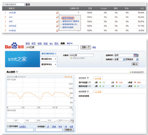 除了網(wǎng)站現有的搜索詞,還需要了解其他熱門(mén)搜索詞,熱門(mén)搜索詞幫助大家了解用戶(hù)的搜索習慣,通過(guò)更多詞優(yōu)化網(wǎng)站收錄。在百度統計中點(diǎn)擊搜索詞(分搜索引擎)報告搜索詞右側的“詞”圖標來(lái)查看查看到與該詞最相關(guān)的10個(gè)熱門(mén)搜索詞;搜索詞后的條形圖表示這個(gè)詞的熱門(mén)程度。