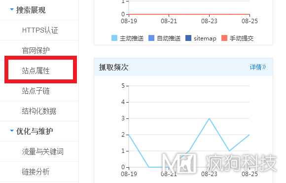 登錄:百度站長(cháng)平臺,選擇左側欄目的《搜索展現》下面你會(huì )看到一個(gè)《站點(diǎn)屬性》如下圖: