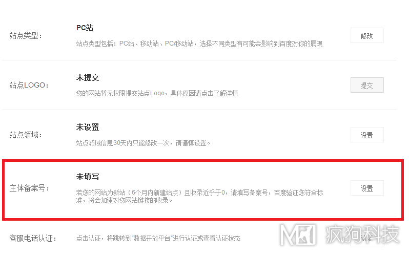看到這里,小伙伴們是不是喜出望外,接下來(lái)的操作其實(shí)很簡(jiǎn)單,只要點(diǎn)擊設置,提交網(wǎng)站的備案號,就可以進(jìn)行在線(xiàn)審核了,具體審核需要什么詳細的標準,給出以下幾點(diǎn)猜想: