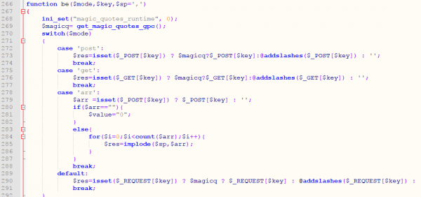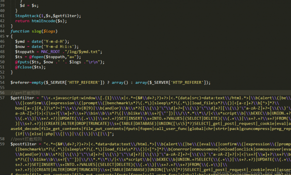 代碼里的empty($wd函數,在進(jìn)行判斷如果是,或者不是的邏輯過(guò)程當中,會(huì )將前段用戶(hù)訪(fǎng)問(wèn)帶來(lái)的參數,進(jìn)行安全過(guò)濾,我們跟進(jìn)代碼來(lái)追尋到蘋(píng)果CMS的配置文件,在function.php配置文件代碼李看到對網(wǎng)站的所有請求方式包括get、post、cookies的提交方式都強制性的進(jìn)行了安全轉義。網(wǎng)站漏洞問(wèn)題的發(fā)生就在這里.